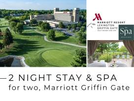 TWO NIGHT STAY, BREAKFAST FOR TWO, and $100 FOR THE SPA! Discover a lavish escape at the Marriott Lexington Griffin Gate Golf Resort & Spa! Enjoy upscale accommodations, a full-service wellness spa, a Rees Jones designed 18 hole championship course, fine dining and state-of-the-art fitness amenities.