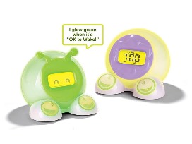 Two fun faceplates and wacky animations give OK to Wake! bedside clock a personality of its own. Fully battery operated with features designed to grow with your child. This clock with soft yellow night-light glows green when it's "OK to Wake!", indicating to toddlers when it's time to get up. Children quickly learn to go back to sleep or play quietly in their room until "green means go!" Easy for parents to program, there is a nap timer feature as well. It will grow with your child, helping children stay in bed when younger (ages 3-5) and then using as an alarm with snooze when older (age 5+). Includes a USB cord, but also has battery backup (4 AA batteries, not included).