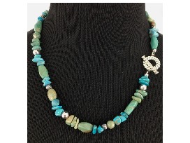 020 inch, sterling silver and turquoise beaded necklace with toggle. Toggle is tarnished. Never worn. Currently selling online for $95.