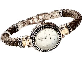 0Designer Ecclissi .925 Sterling Silver Watch with white round dial analog wristwatch. Genuine cowhide. Never worn. Currently selling online between $68 and $150.
