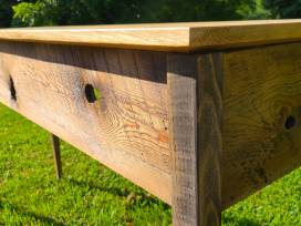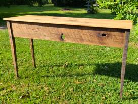 Lovingly (and cleverly) called "Holey Hall Table, Batman!" this piece is a gorgeous and unique addition to any home! Crafted out of reclaimed wood, the console table shows off all the natural beauty of its material from stunning wood grain to the titular knot holes. It's both rustic and refined, a wonderful blend of artful form and practical functionality.