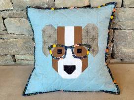 So cute, so huggable! Have you ever had a favorite pillow? Well, you do now! This hand-quilted pillow takes designer fabrics from Rifle Paper Co and others, adds a big dose of whimsy, and creates a sweet glasses-wearing pup you won't be able to get enough of.
