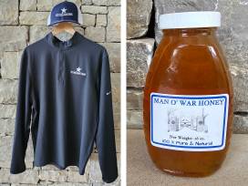 Also includes a Mt. Brilliant logo hat, Men's Nike Golf pullover in black (size L) , and 16 oz jar of Man O' War honey.