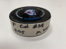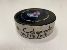12.13.23 Colorado Avalanche vs. Buffalo Sabres Miles Wood Goal Puck.