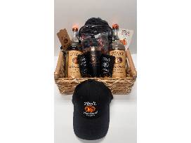 This Tito's Basket includes two bottles of Tito's Handmade Vodka, a Tito's themed hat, t-shirt, tote bag, mini bookbag, fanny pack, 2 shot glasses, and a Tito's themed tumbler.