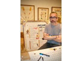 11x9 inch softcover book containing 60 beautifully rendered pages of original work spanning 10+ years of middle school musings. Adam Greener has been a longtime storyteller. As a kid, Adam spent most of every 56-minute class period doodling in his spiral-bound, visual wanderings that often landed him in detention, repeatedly writing "| will not..." In his large-scale loose leaf canvases, seemingly torn from the notebook of a distracted grade-schooler, Adam Greener explores the ways in which the youthful imagination processes the chaotic swirl of social and cultural imagery that seeks to shape, stimulate, and confine it all at once. With his series of ink illustrations, created on handmade "notebook" sheets, he taps into his memories of his early visual preoccupations and re-presents them with a witty and subversive not-so grown-up eye.