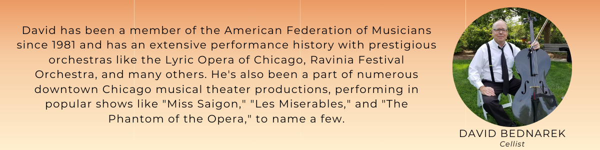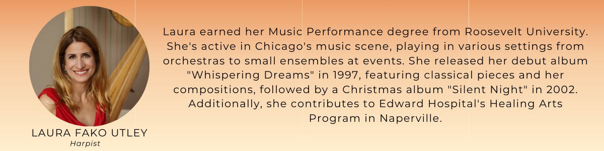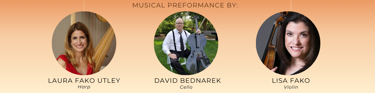 - The music of string trio: Laura Fako Utley (Harp); David Bednarek (Cello); Lisa Fako (Violin)
