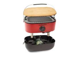 Tote this portable gas grill to your next tailgate, park day, or party. Features include extending legs, heat-retaining cast iron, 9,000 BTU burner, and double use lid/cutting board.