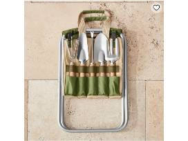 Perfect for gardening enthusiasts of all ages, this multi-tasking gardening seat features a stool, a detachable storage tote, and five essential outdoor tools.