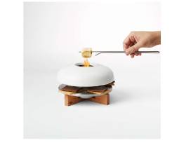 The cutest campfire ever, no camping required. Use the stainless steel sticks to roast your marshmallows while squares of chocolate soften on graham crackers below. Suitable for outdoor and well-ventilated indoor cooking.