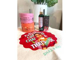 An assortment of products from haircare brand Shaz & Kiks. Includes: