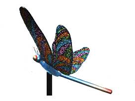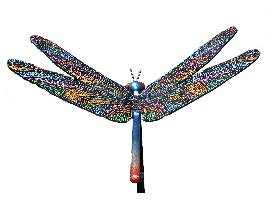 Following her father's passing, she found inspiration to create a Dragonfly sculpture for Wings of Change while surrounded by dragonflies at his butterfly monument. The symbolism in "Soulfly" reflects themes of change, letting go, and personal interpretation, inspired by the beauty and uniqueness of dragonfly wings. "Soulfly" was born through this exploration, emphasizing the importance of diversity and individuality. The intricate patterns of dragonfly wings, resembling the reflections of a disco ball, highlight the appeal of diverse interpretations, echoing themes of transition and individuality in her artistic journey.