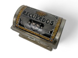 1Jesus Guerrero Santos - Silver Inlaid Box. Jesus is a Master Artisan from Guadalajara, Jalisco. This Mexican silver box is the perfect place for special keepsakes. 8.5" x 8.5".