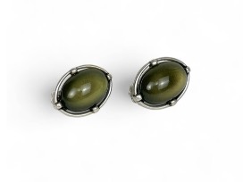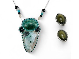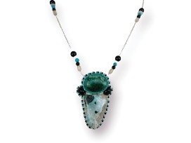 1Quartz Malachite Necklace. Pendant necklace with quartz and malachite ovals on beaded 20 chain. Made in 1993 by Tzipora Hoynik.