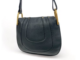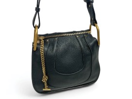 1Black Chloe Marcie Leather Shoulder Bag with Gold Toned Hardware and Zip Closure Top. 11" H X 12" W, shoulder strap drop 17".