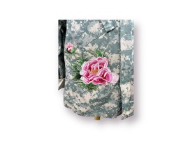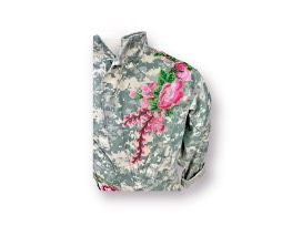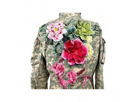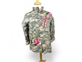 Ladies Vintage US Army camouflage jacket hand embellished with floral details on front and back.