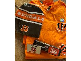 $25 gift card to the Bengals pro shop, 2 Bengals t-shirts, 2 winter hats and a custom Groove Belt with Bengals buckle.