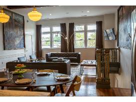 Highland Station: This penthouse suite can sleep up to 10 and has two king beds, one queen bed and two full beds and is a premier accommodation perfect for families and groups. Highland Station is equipped with a full kitchen, multiple seating dining area, and a spacious living area, ensuring a relaxing and memorable stay