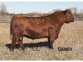 A solid Make Mimi X Grand Canyon donor cow from the maternal Linsey cow family. She has been a great producer, producing our top selling 2016 bull C-T Prime 5097 to Bauman Red Angus, North Dakota. She was our high selling cow to Rocking Bar H in the 2018 Big Sky Elite sale. She has earned an Mppa of 105