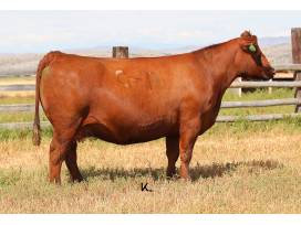 A solid Make Mimi X Grand Canyon donor cow from the maternal Linsey cow family. She has been a great producer, producing our top selling 2016 bull C-T Prime 5097 to Bauman Red Angus, North Dakota. She was our high selling cow to Rocking Bar H in the 2018 Big Sky Elite sale. She has earned an Mppa of 105