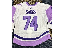 Adidas Hockey Fights Cancer Jersey autographed by Juuse Saros. (Size 58G).