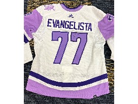 Adidas Hockey Fights Cancer Jersey autographed by Luke Evangelista. (Size 56).