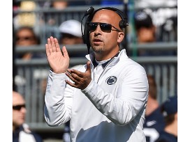 An authentic Penn State Football Helmet signed by Coach James Franklin