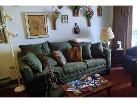 The spacious and well-appointed condo features a fully equipped kitchen, cozy living area with a fireplace, and a private balcony with breathtaking views of the surrounding mountains. The two bedrooms comfortably sleep up to 6 guests, offering a king bed in the master suite and two twin beds in the second bedroom, with an additional sleeper sofa in the living room.