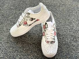 These custom Nike sneakers are one-of-a-kind. Hand painted by local artist Katie Hall, these size 8 women's shoes featuring Japanese-inspired art will have you walking in style and comfort.