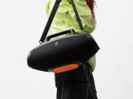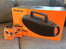 Elevate your next party with Skullcandy's Barrel boombox speaker. It comes with 12 hours of battery life, Bluetooth connectivity, a detachable carry strap, and true wireless stereo sound. Package includes two wireless headphones from Skullcandy's premium Anc product line.