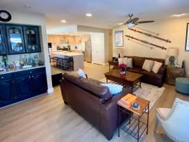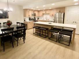 - Full kitchen with refrigerator, oven, stove, microwave and dishwasher