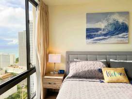 Experience the breathtaking views overlooking the world famous Waikiki Beach from this ocean view condo. The one-bed, one-bath space comfortably sleeps 5 people. Your six (6) night stay will include spectacular panoramic views that span from Diamond Head to the twinkling city lights of Honolulu! To see more about the condo, visit www.airbnb.com/rooms/1133012928721511620.