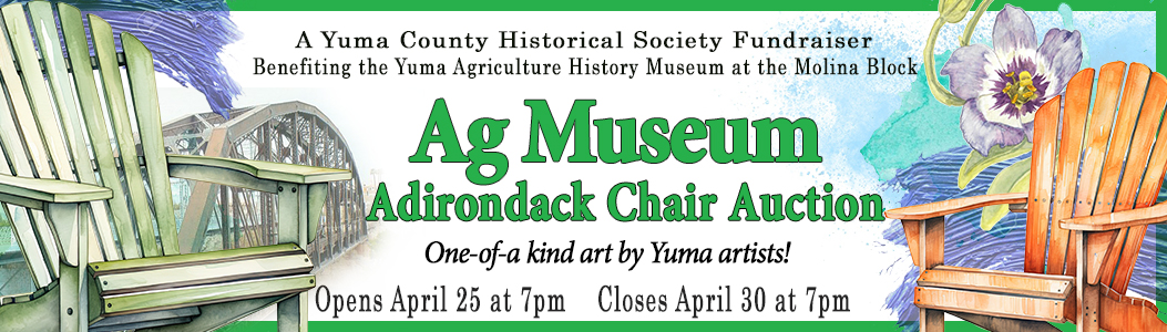 The Yuma County Historical Society’s Ag Museum Adirondack Chair Auction represents a beautiful blend of artistry and community. Five talented Yuma artists present their one-of-a-kind masterpieces using wooden Adirondack chairs as canvases. Designs celebrate Yuma’s glory as uniquely seen through the eyes of each artist. Your donations and bidding are appreciated.