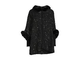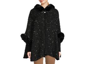 Plush faux fur trim adds interest to this shimmering kimono designed with allover sequins.