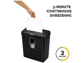 In addition to paper, this device safely shreds staples and plastic credit cards, reducing the need for tedious document sorting. Shreds up to 3 minutes before a 40-minute cool down period is needed