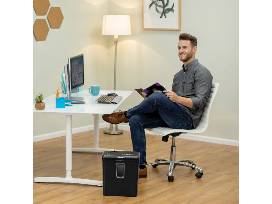 Choose this cross-cut shredder to make quick work of stacks of documents. The Fellowes shredder handles 6 sheets per pass and offers a large, 4-gallon bin to require less-frequent emptying.