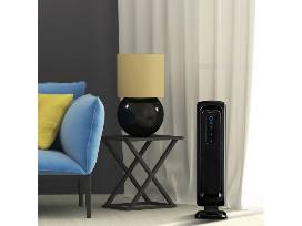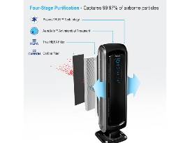 Fellowes AeraMax 90 air purifier features a four-stage hospital-type filtration that effectively cleans air in small spaces (100-200 sq. ft.). True HEPA filter with antimicrobial treatment safely removes 99.97% of airborne particles as small as 0.3 microns, including allergens, viruses, and cigarette smoke. Carbon filter removes odors. Smart Sensor detects air quality and automatically adjusts the fan speed to keep your air purified.