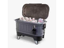 Elevated base makes reaching into the cooler very convenient or Cooler can be removed from the base to use as a conventional ice chest