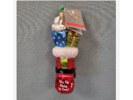 Christopher Radko RARE Golf Caddy Ho Ho Hole In One Christmas Ornament Presents.This ornament measures 6" high. It's in beautiful original shape. A gold caddy filled with presents says Ho Ho Hole in One on the front