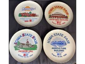 In the 1980's Jim Quinn ran the official Iowa State Fair souvenir tent. He created this series of eight souvenir plates that feature iconic buildings of the Fairgrounds.