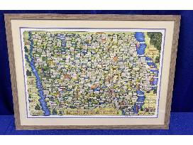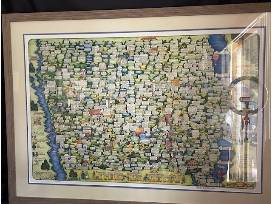It's a map of Iowa featuring tiny depictions of communities' claim to fame, as well as a few fun "Where's Waldoesque" details.