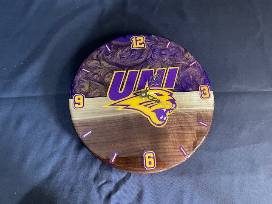 Support your favorite team with a 12" wood and epoxy resin clock. This one favors the Panthers of UNI.