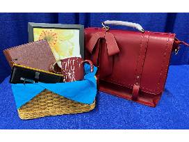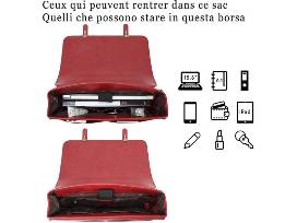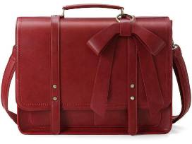 Add a flair to your work day with a red leather briefcase that features a detachable leather accent bow.