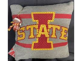 An Iowa State t-shirt pillow with attached bell ornament has plenty of bling to up your holiday decor.