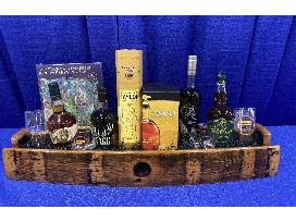 - Showcase your bourbon in a sleek tray created from oak barrel casks.