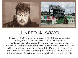 - The package includes 12 concert tickets and 12 gate admission tickets for Jelly Roll's concert with special guest Dax on Saturday, August 10. This is not a private suite but is limited to 24 people.