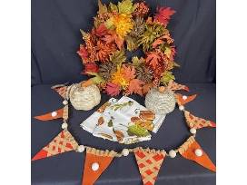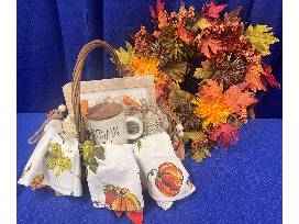 With a leaf-filled wreath, welcoming sign and decorative pumpkins, this package will refresh your Fall decor.