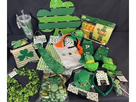 Celebrate the luck of the Irish with this package filled with shamrocks and all things green. There is decor, crafts, towels and signs and a whole lot more, including items to wear.