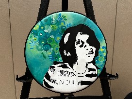 Media: Spray Paint, Acrylic, Posca Paint Pens on a drum head
