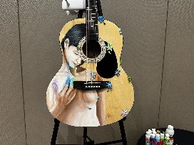 Media: Acrylic Paint, Mixed Media on an acoustic guitar